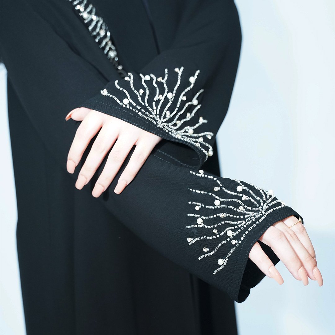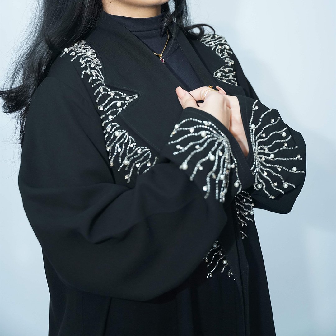 Cuba fabric, silver crystal hand work