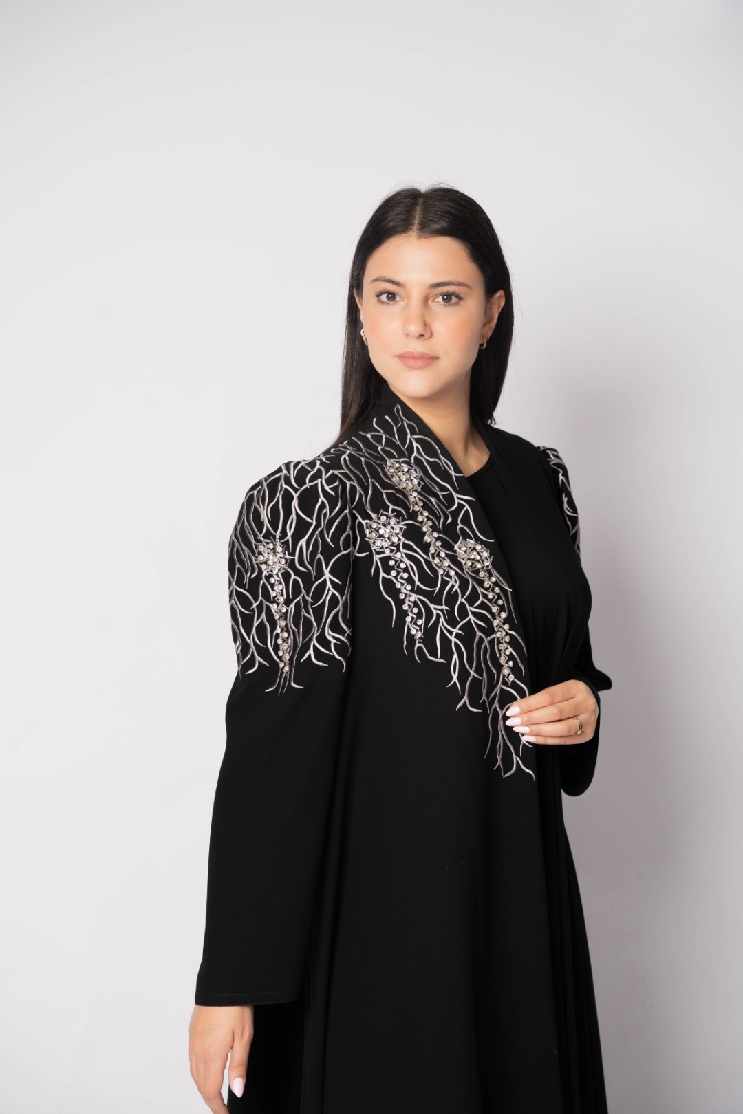 تطريز يدوي مع تفاصيل كريستالية لامعة على كل جانب