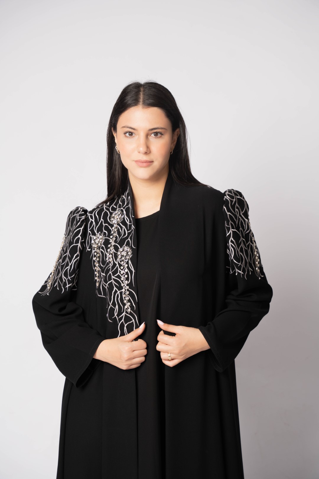تطريز يدوي على الجهة الأمامية والأكمام، بالاضافه الى بريق الكريستال