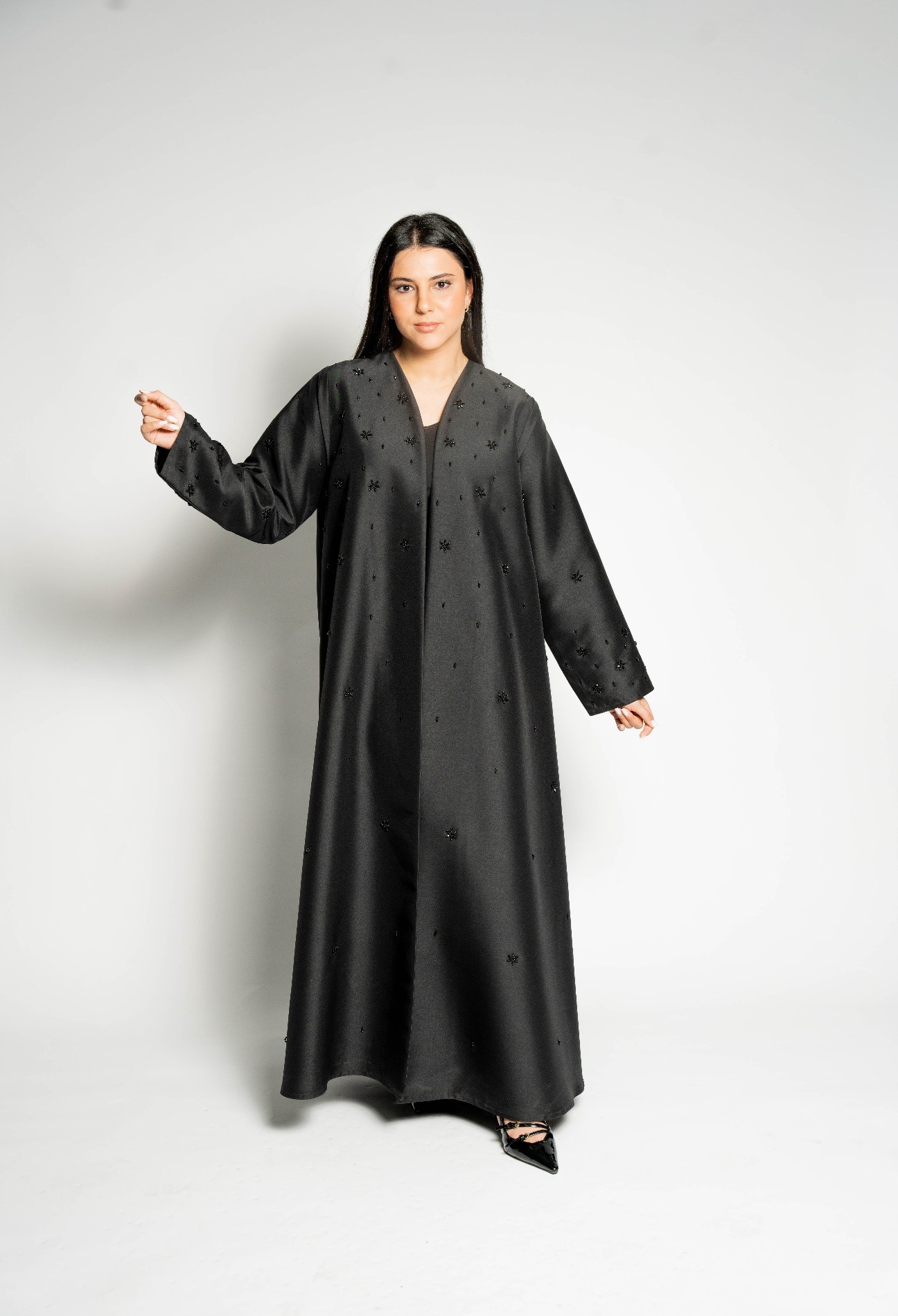 تطريز يدوي من الكريستال على الجهة الأمامية والأكمام