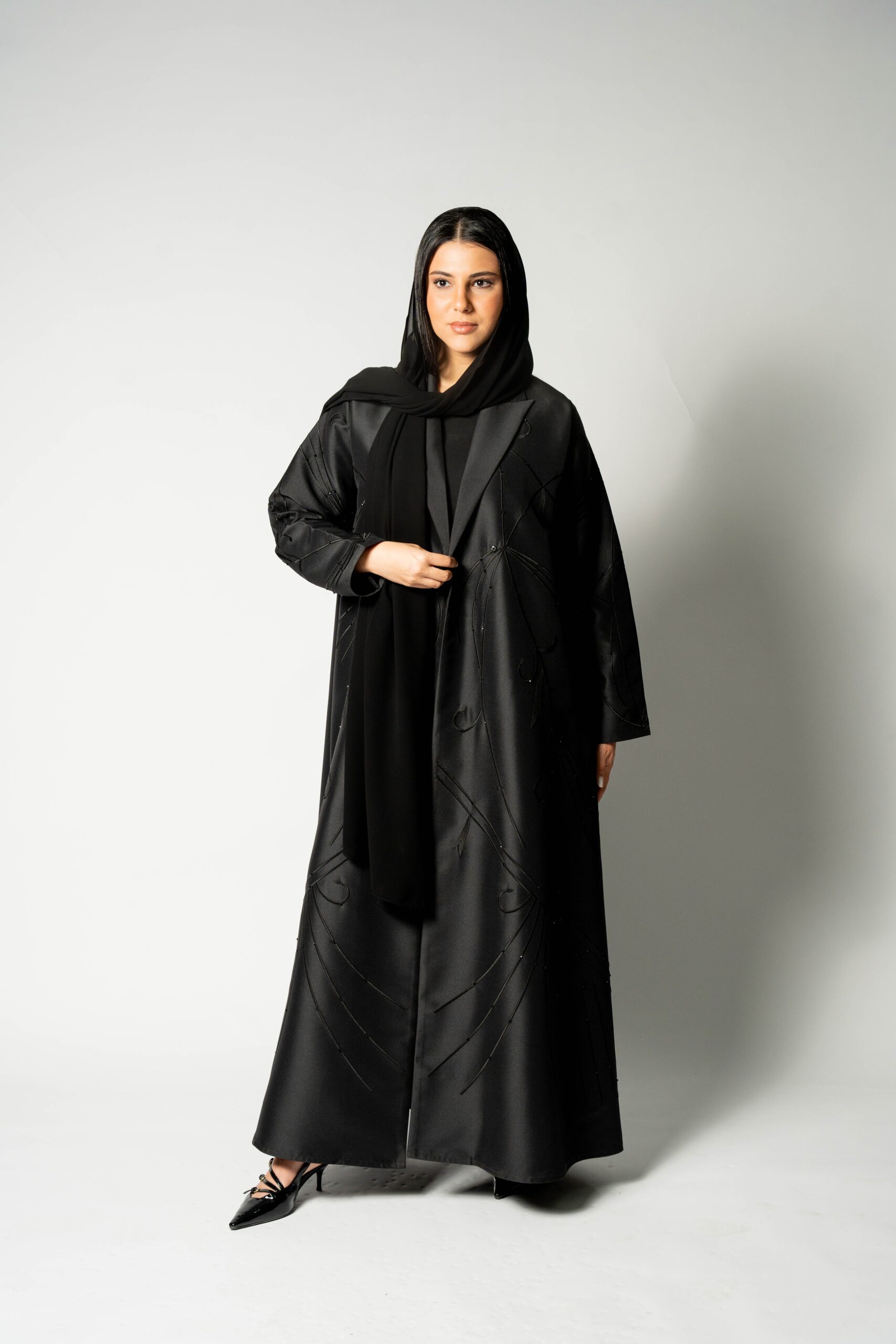 تطريز يدوي على الجهة الأمامية والأكمام، بالاضافه الى بريق الكريستال